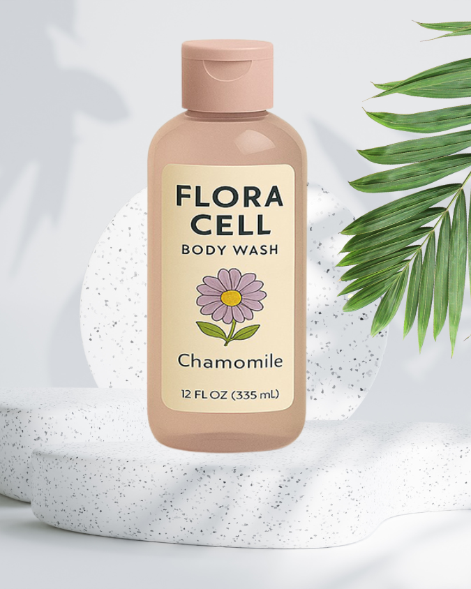 FLORA CELL Body Wash Chamomile est un gel douche formulé à base d’extrait de camomille bio, conçu pour nettoyer en douceur tout en apaisant les peaux sensibles grâce à ses propriétés calmantes et son parfum délicat.